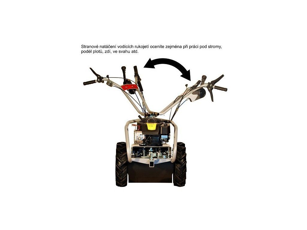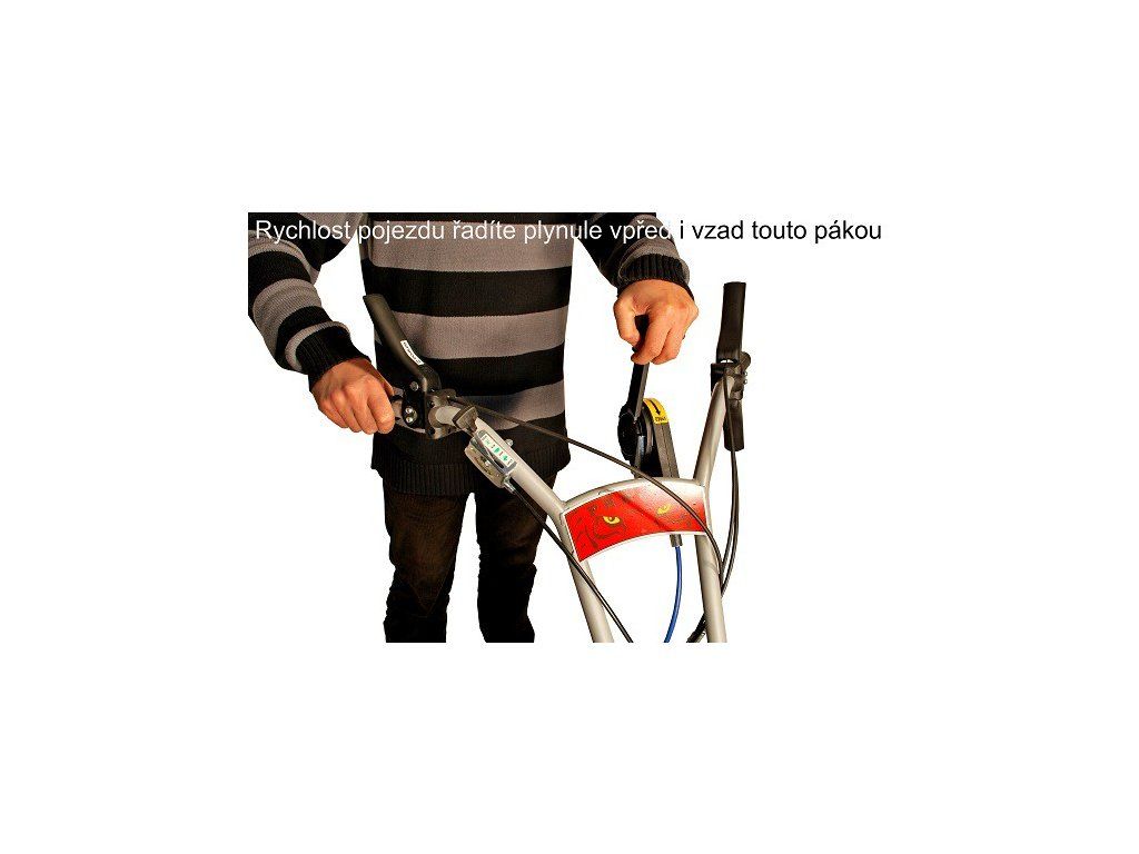 Vďaka použitej hydrostatickej prevodovke je možné plynule voliť rýchlosť vpred aj vzad. Rýchlosť sa mení nastavením páky na riadidlách. Veľkou výhodou je, že je možné rýchlosť pojazdu presne upôsobiť vykonávanej práci a fyzickým možnostiam obsluhy. Pohonná jednotka je osadená motorom Loncin s obsahom 224 cm³, s výkonom 7,3 HP, v prevedení pre najnáročnejšie priemyselné a profesionálne nasadenie, pretože má liatinovú vložku valca a karburátor prispôsobený pre prácu aj vo väčších svahoch. Motory Loncin sú pre nás svojím prevedením zárukou, že obstoja v náročných prevádzkových podmienkach.