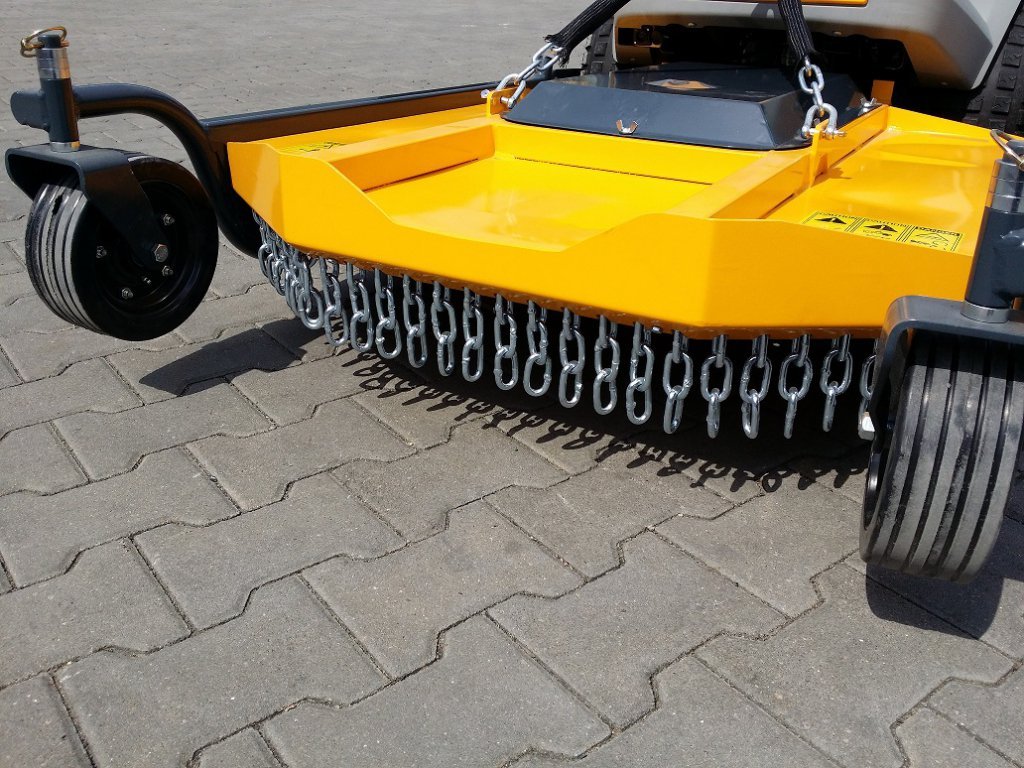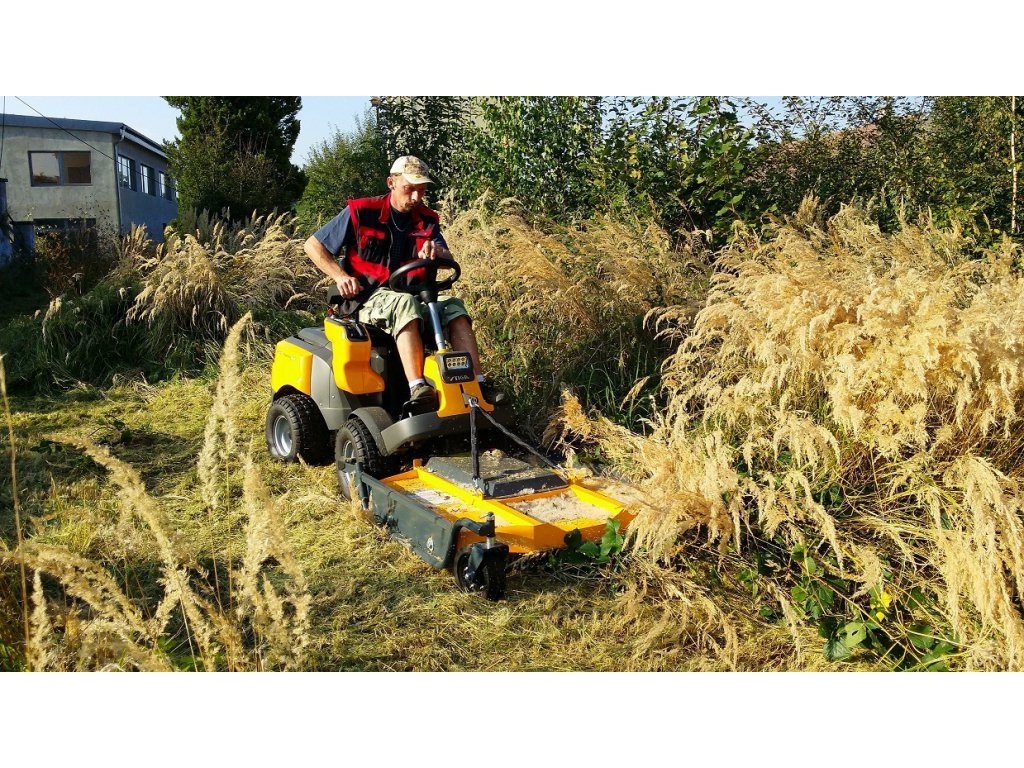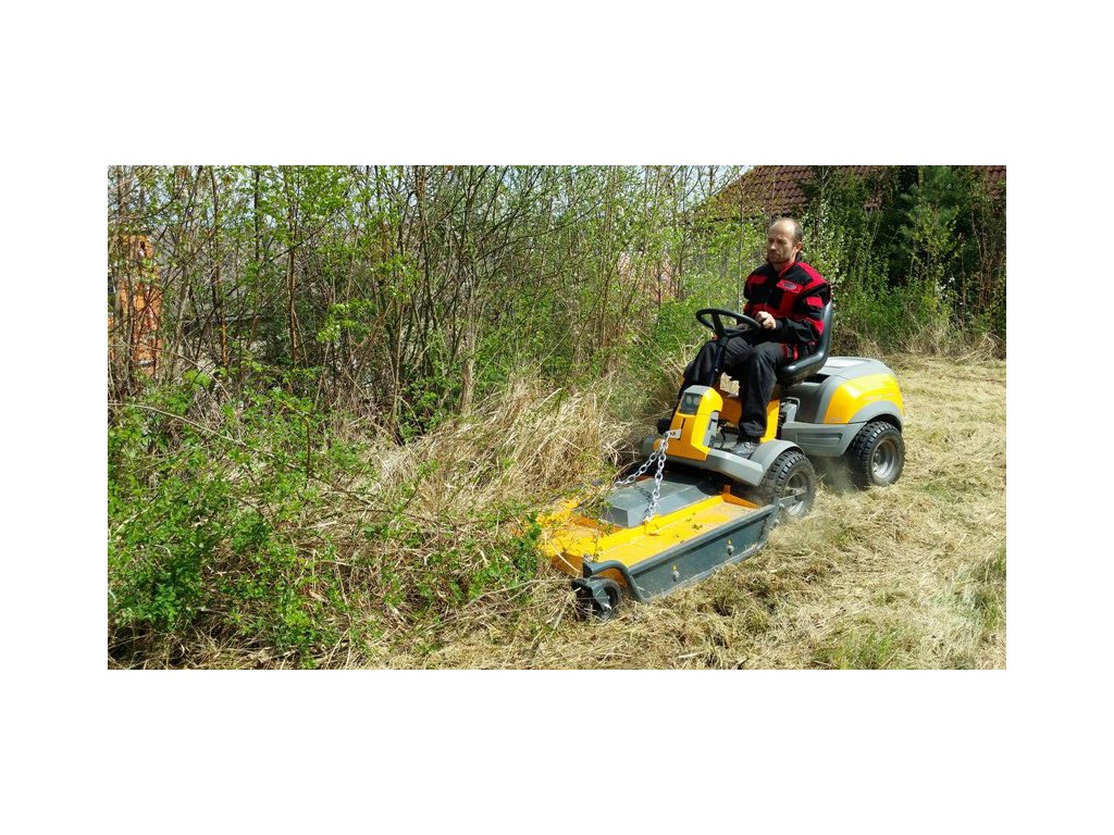 Pracovným nástrojom je jeden robustný a vysoko kvalitný rotačný nôž, s dvoma sklopnými koncami, ktoré zabraňujú jeho poškodeniu pri strete s kolíznym predmetom.