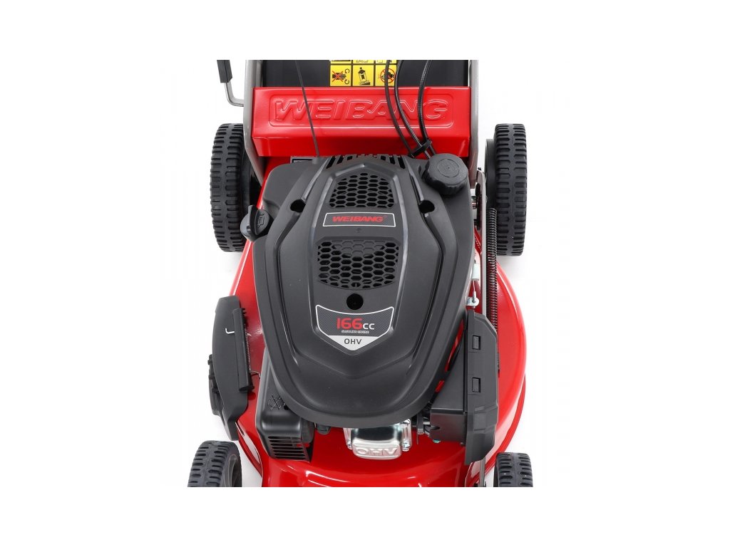 Ďalším veľkým unikátom je motor, ktorý patrí medzi to najlepšie čo Weibang v danej triede ponúka. Jedná sa o profeisonálný silný motor rozvodu OHV s výkonom 6 HP a vysokým krútiacim momentom 8,9 Nm - 159 ccm. Veľkou výhodou tohto motora je automatický sýtič, tzn. že kosačku naštartujete bez nutnosti čokoľvek na kosačke či motoru nastavovať. Samostané veľmi ľahké ručné naštartovanie zvládne bez problému každy aj žena či starší človek. Ďalšie profesionálny prvok, ktorým kosačka disponuje je masívna kovová variabilná prevodovka s garantovanou dlhou životnosťou.
