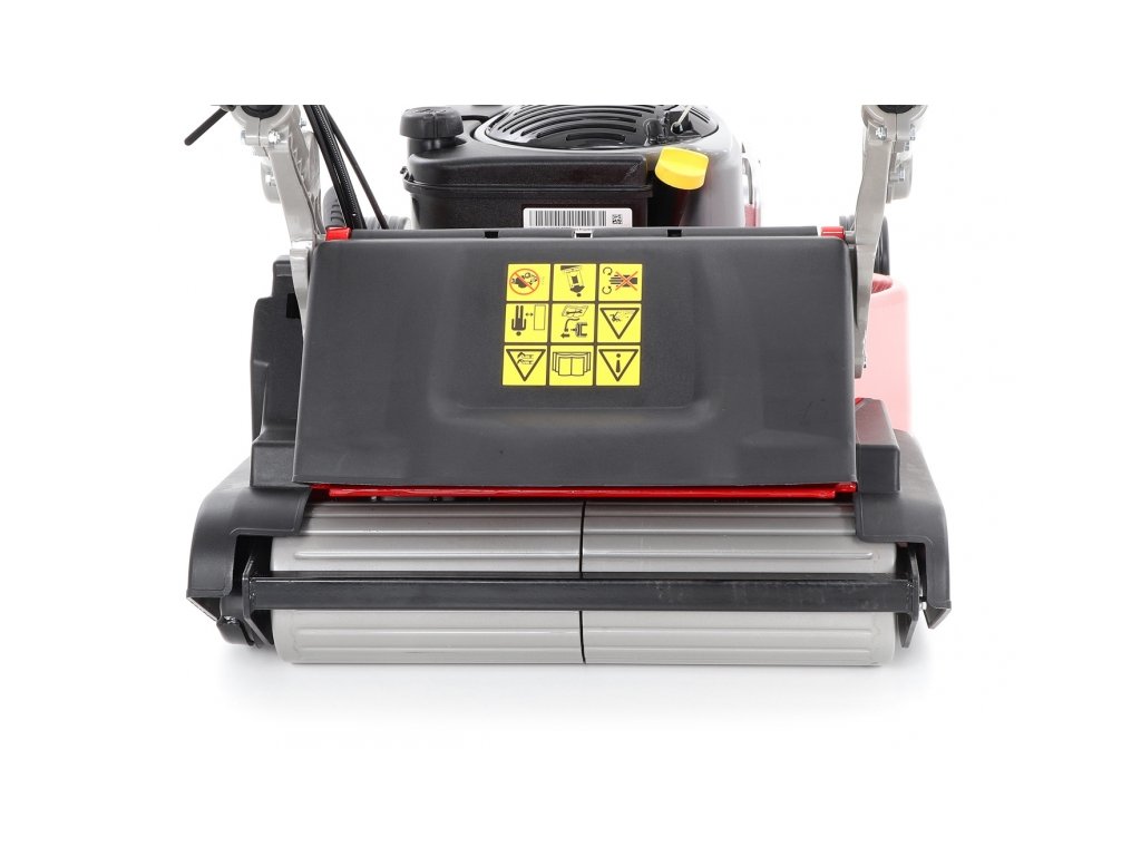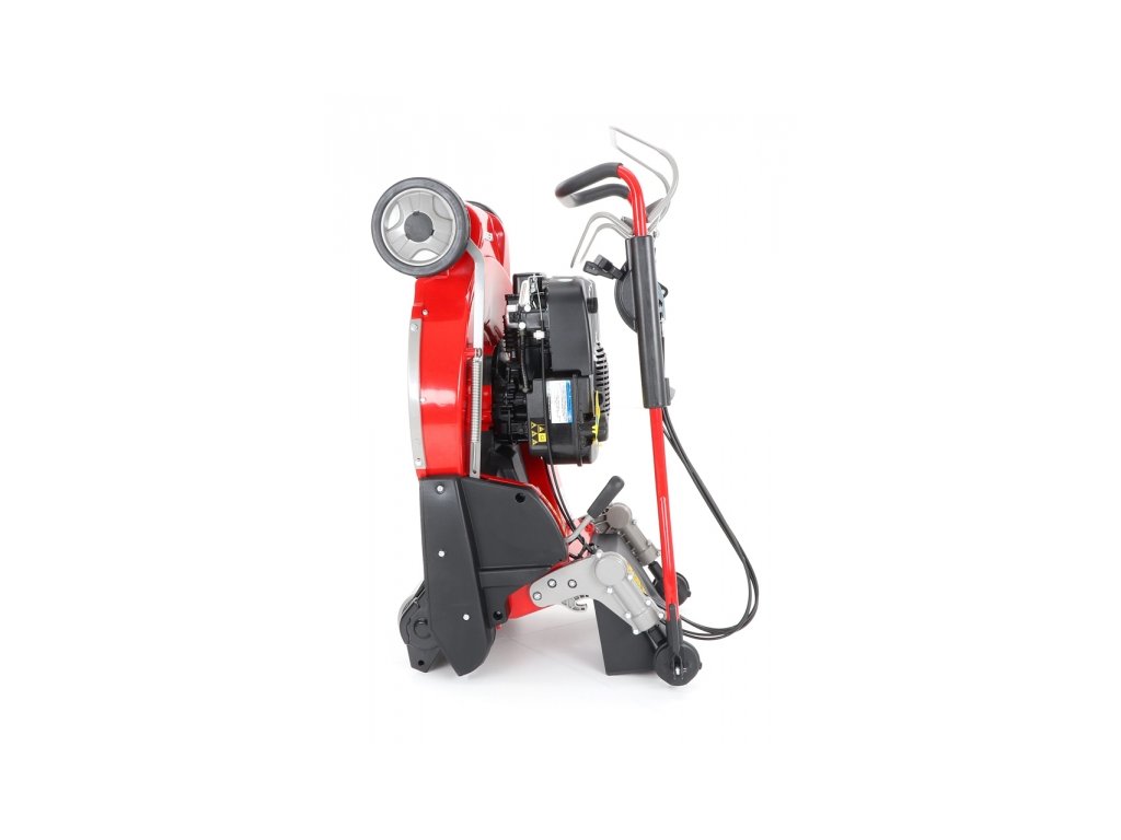 Ďalej je táto kosačka vybavená kovovým pohonným valcom a sklopnou rukoväťou pre ľahké uskladnenie a prepravu.