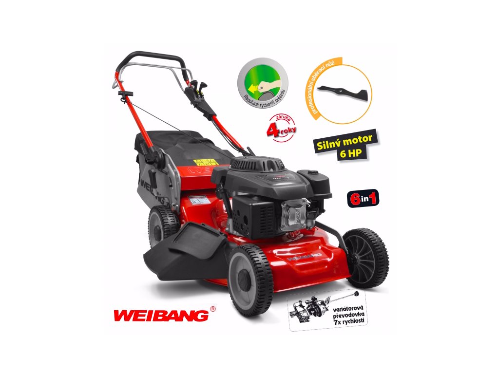 Ďalším veľkým unikátom je motor, ktorý patrí medzi to najlepšie čo Weibang v tejto triede ponúka. Jedná sa o profeisonální silný motor rozvodu OHV s výkonom 6 HP a vysokým krútiacim momentom 8,9 Nm - 159 ccm. Veľkou výhodou tohto motora je automatický sýtič, tzn. že kosačku naštartujete bez nutnosti čokoľvek na kosačke či motoru nastavovať. Samostané veľmi ľahké ručné naštartovanie zvládne každý, bez problémov aj žena či starší človek. Ďalšie profesionálný prvok, ktorým kosačka disponuje je masívna kovová variabilná variátorová prevodovka s garantovanou dlhou životnosťou.