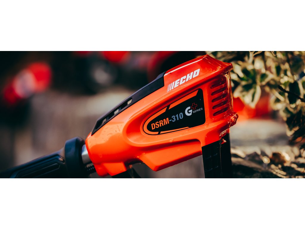 Krovinorez DSRM-310 má veľký dvojradový záber rezania s dĺžkou 30 cm a vysokootáčkový motor pre výkonné a presné trimovanie.